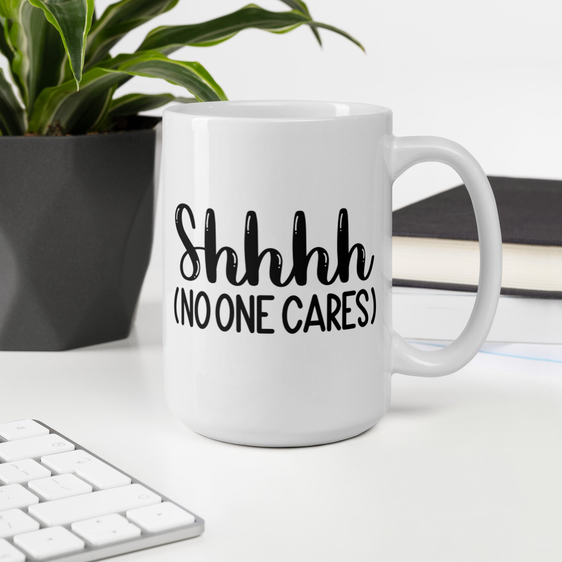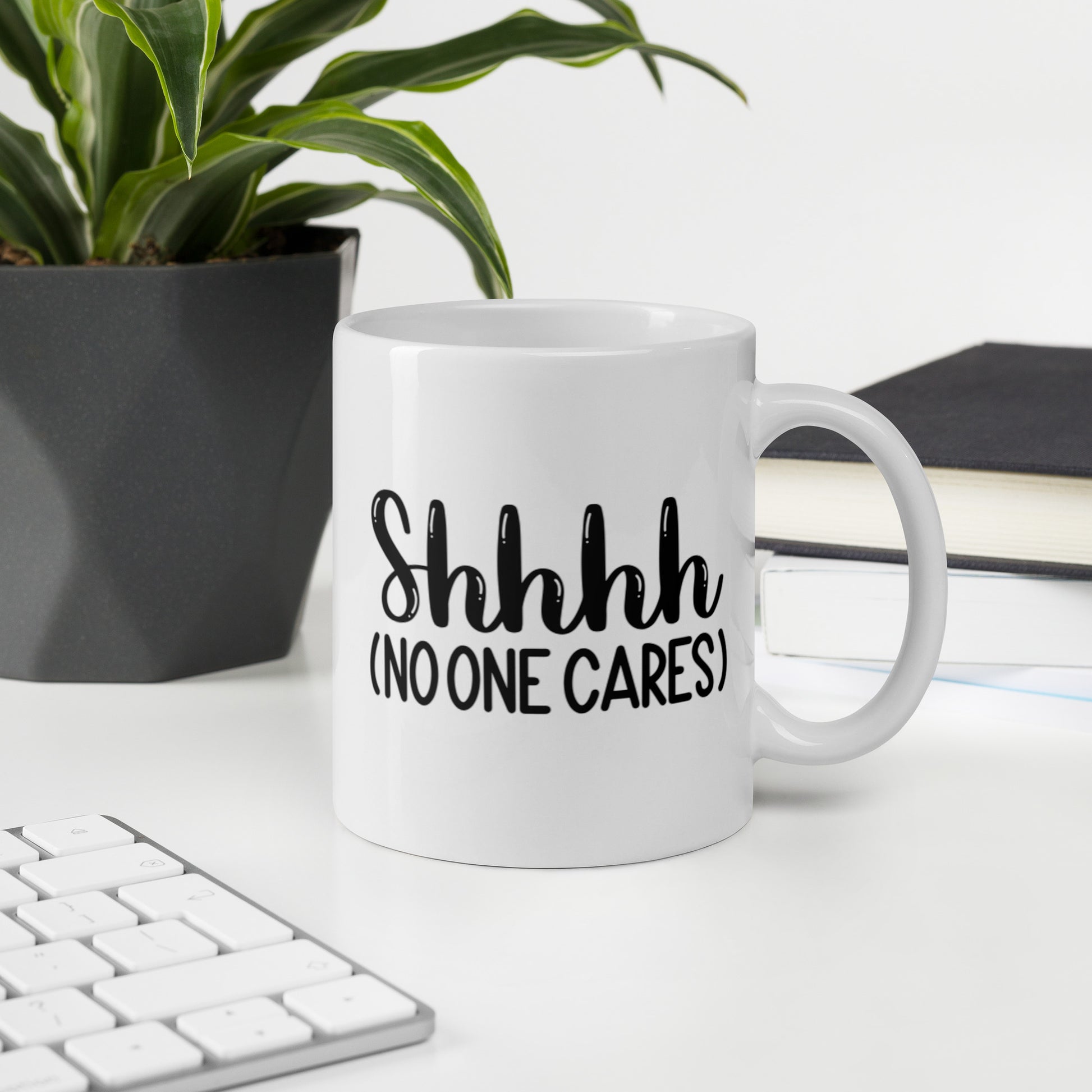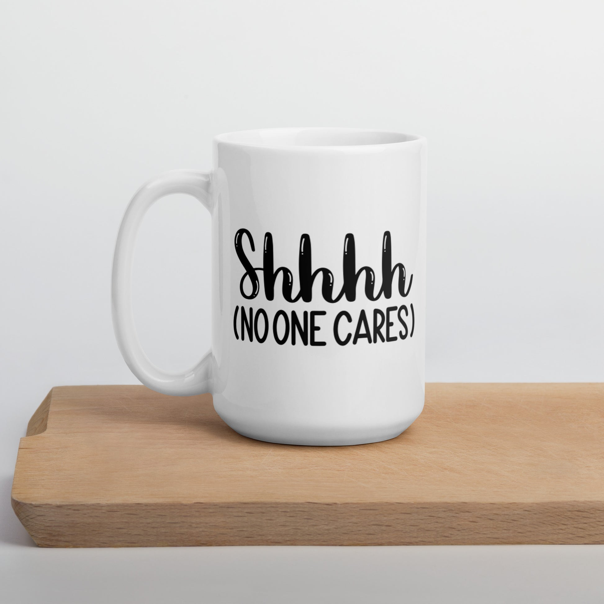 Shhh No One Cares White glossy mug Ceramic White Glossy Coffee Mug